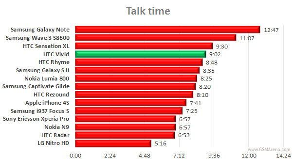 This is one of the better results we've encountered during our battery tests. The HTC vivid proved a remarkable efficiently, if you are left in the standby mode alone.